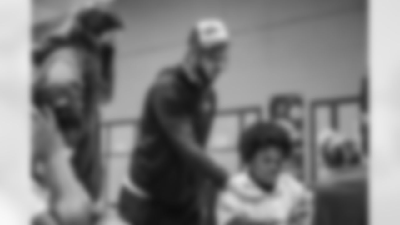 Detroit Lions center Evan Brown (63) and Detroit Lions linebacker Josh Woods (51) with Detroit Lions Academy students on Tuesday, November 15, 2022 in Detroit, MI. (Josh Mandujano/Detroit Lions).