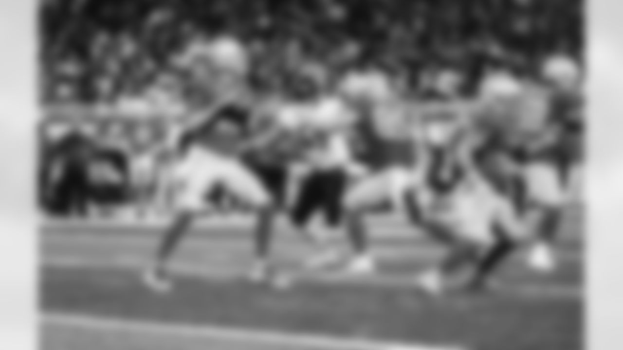 Detroit Lions running back Craig Reynolds (46) and Detroit Lions wide receiver DJ Chark (4) during a NFL football game against the Chicago Bears on Sunday, January 1, 2023 in Detroit, MI. (Jeff Nguyen/Detroit Lions).